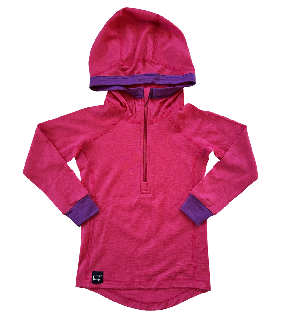 It's all your little adventurer needs in a Base Layer Hoodie. Pure Merino, plus all the technical details uniting comfort and performance for a top-notch garment. With a half zip for versatility and easy on and offs, and a snug-fitting hood to fit easily under jackets and helmets. Finished with flat lock seams for added comfort and durability.