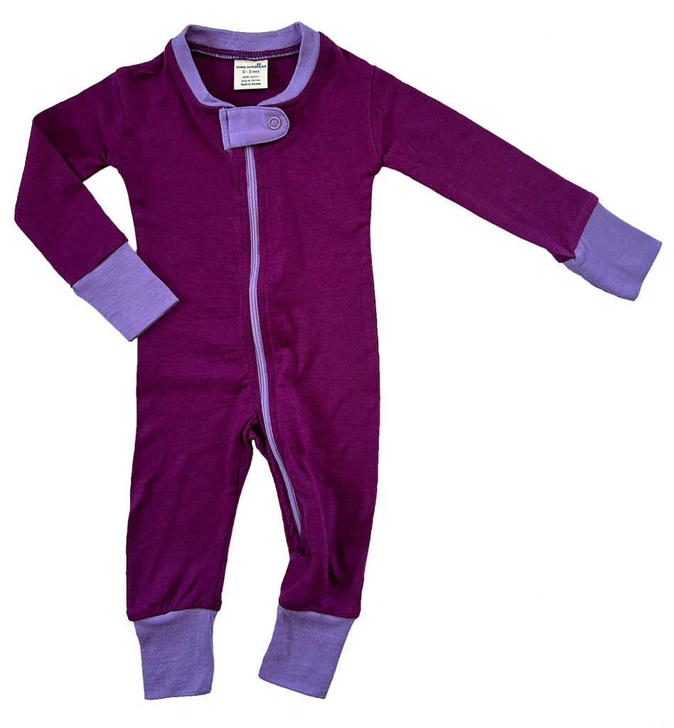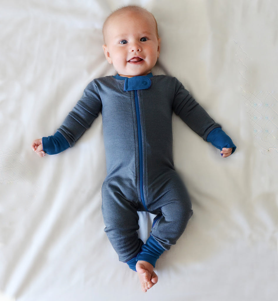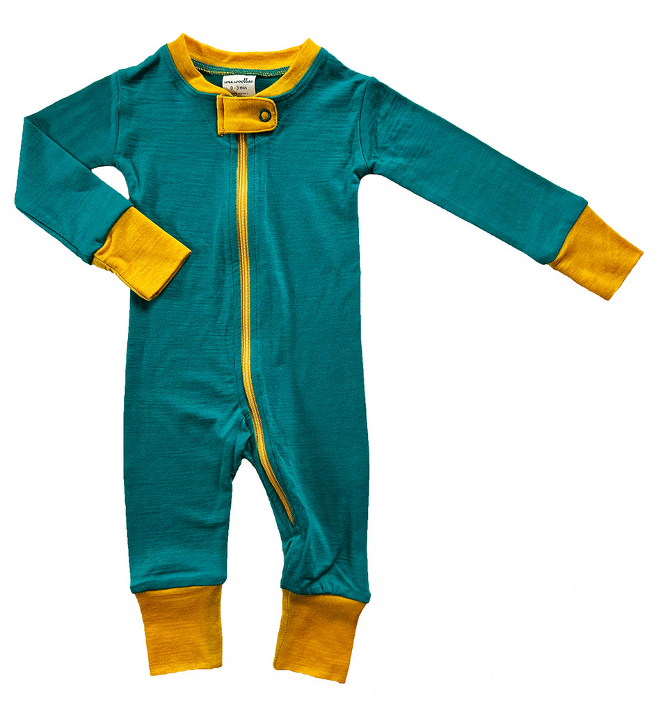 A carefully crafted combination of comfort and style, this little number makes dressing baby a breeze and lets you rest easy knowing your little one will stay comfy and cozy all night or day! With fold over cuffs for room to grow and a smooth zipper for easy on and offs, it's sure to be your favourite for every occasion. Ultra fine merino fibres have the amazing ability to regulate body temperature and help control moisture, so baby stays dry and comfortable all the time.