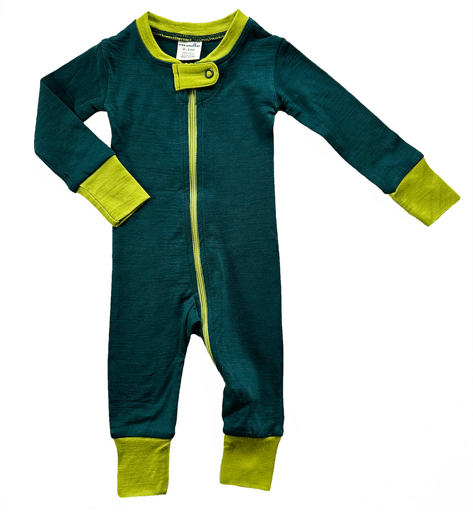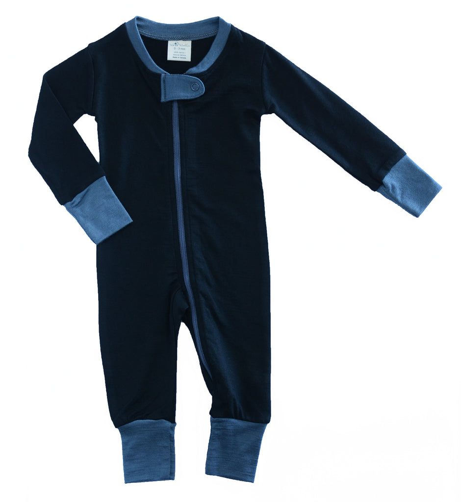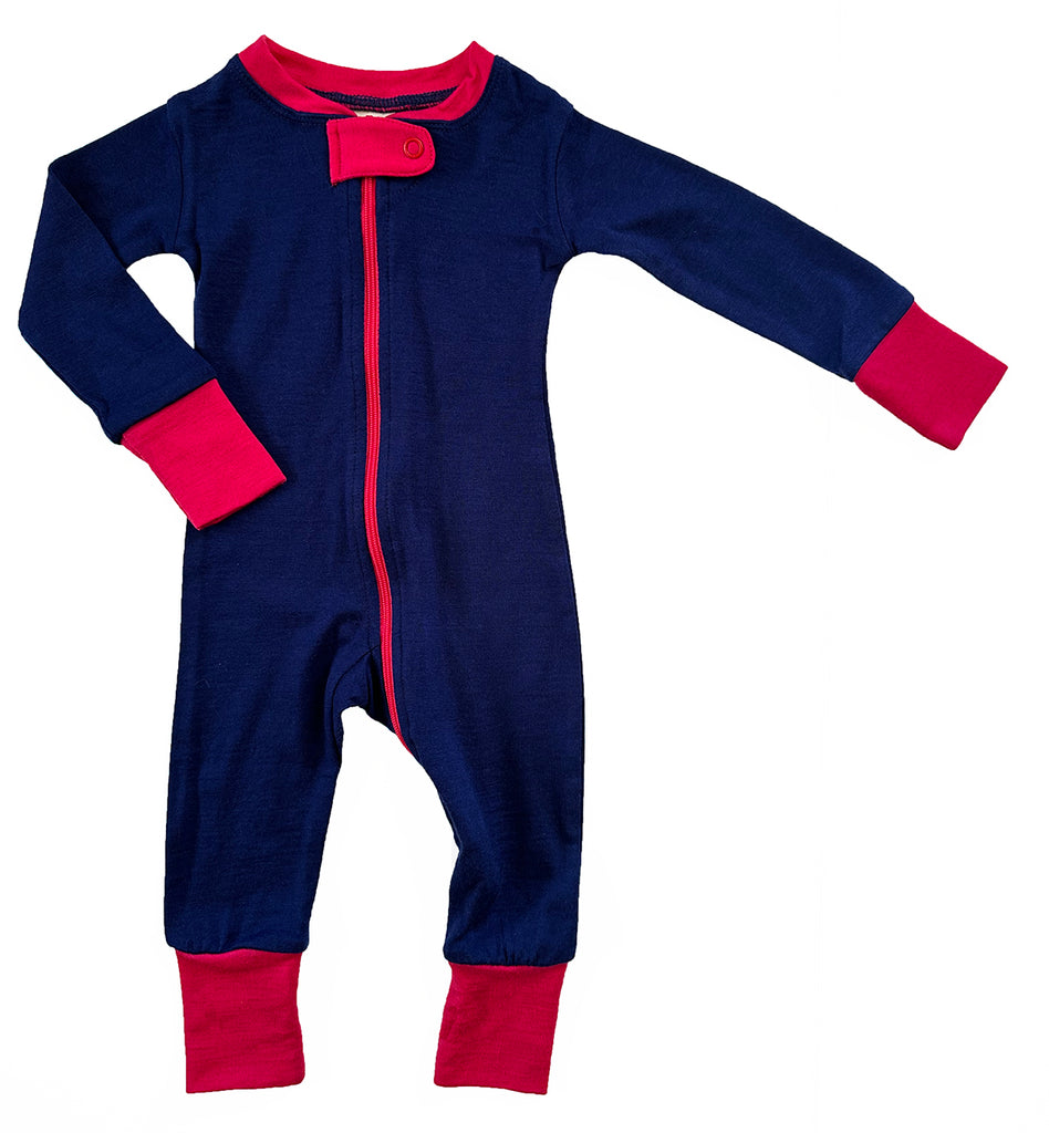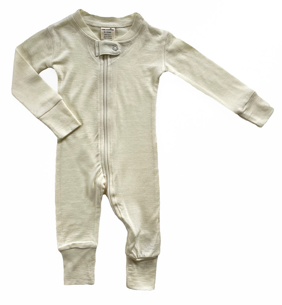 A carefully crafted combination of comfort and style, this little number makes dressing baby a breeze and lets you rest easy knowing your little one will stay comfy and cozy all night or day! With fold over cuffs for room to grow and a smooth zipper for easy on and offs, it's sure to be your favourite for every occasion. Ultra fine merino fibres have the amazing ability to regulate body temperature and help control moisture, so baby stays dry and comfortable all the time.